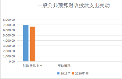 2020年一般公共预算财政拨款支出6668.06万元,占本年支出合计的56.07%。与2019年相比,一般公共预算财政拨款减少345.54万元,下降4.9%。主要变动原因是农林水支出减少,导致财政拨款支出减少。