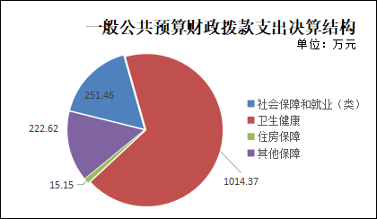 2020年一般公共预算财政拨款支出1503.6万元,主要用于以下方面:社会保障和就业(类)支出251.46万元,占17%;卫生健康支出1014.37万元,占67%;其他保障支出222.62万元,占15%住房保障支出15.15万元,占1%;。(罗列全部功能分类科目,至类级。)