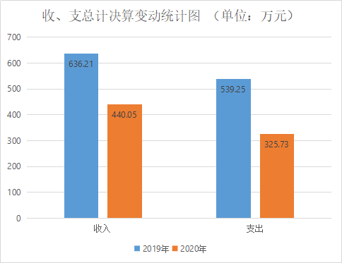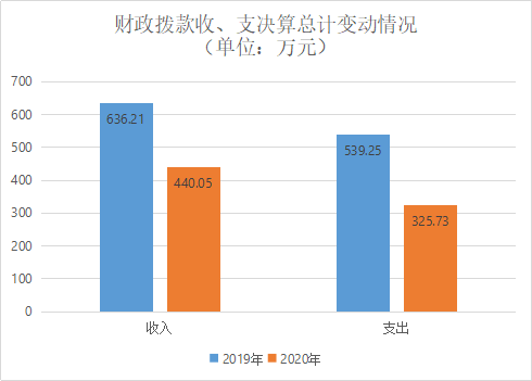 2020年我单位预算收入343.1万元,较2019年474.21万元相比收入减少131.11万元,总收入减少38.21%。其中:一般公共预算财政拨款收入250.1万元,占72.89%;政府性基金预算财政拨款收入93万元,占27.11%。较2019年474.21万元相比收入减少131.11万元,总收入减少27.64%。变动原因是当年人员减少,项目资金减少。