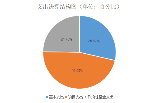 2020年我单位支出325.73万元,其中:基本支出93.14万元,占28.59%;项目支出151.88万元,占46.63%;政府性基金支出80.71万元,占24.78%。较2019年支出539.25万元减少213.52万元,减少39.59%