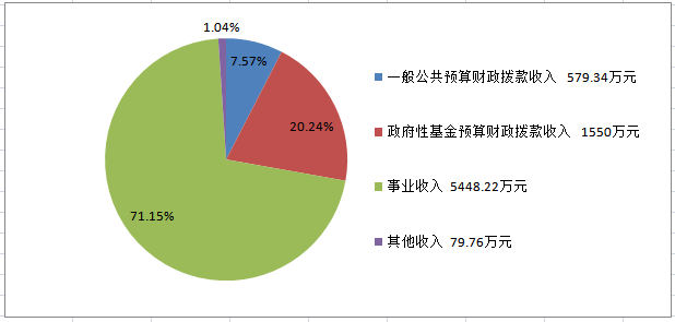 2020年本年收入合计7657.32万元,其中:一般公共预算财政拨款收入579.34万元,占7.57%;政府性基金预算财政拨款收入1550万元,占20.24%;上级补助收入0万元,占0%;事业收入5448.22万元,占71.15%;经营收入0万元,占0%;附属单位上缴收入0万元,占0%;其他收入79.76万元,占1.04%。