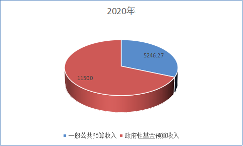 2020年本年收入合计16746.27万元,其中:一般公共预算财政拨款收入5246.27万元,占31.32%;政府性基金预算财政拨款收入11500万元,占68.68%;上级补助收入0万元,占0%;事业收入0万元,占0%;经营收入0万元,占0%;附属单位上缴收入0万元,占0%;其他收入0万元,占0%。