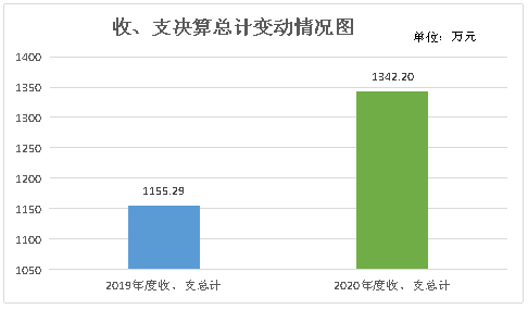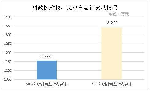 2020年度收支总计1342.20万元。与2019年相比,收、支总计增加186.91万元,增长16.18%。主要变动原因是行政区划调整两乡镇合并人员增加、公用经费增加。