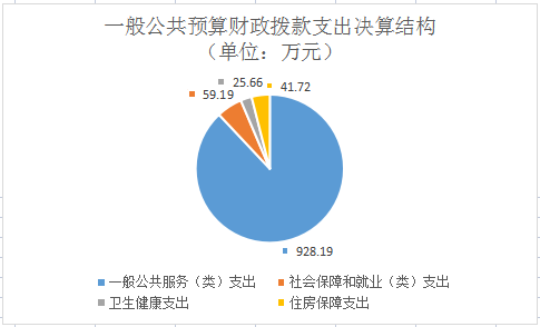 2020年一般公共预算财政拨款支出1054.77万元,主要用于以下方面:一般公共服务(类)支出928.19万元,占88%;社会保障和就业(类)支出59.19万元,占5.79%;卫生健康支出25.66万元,占2.43%;住房保障支出41.72万元,占3.78%。