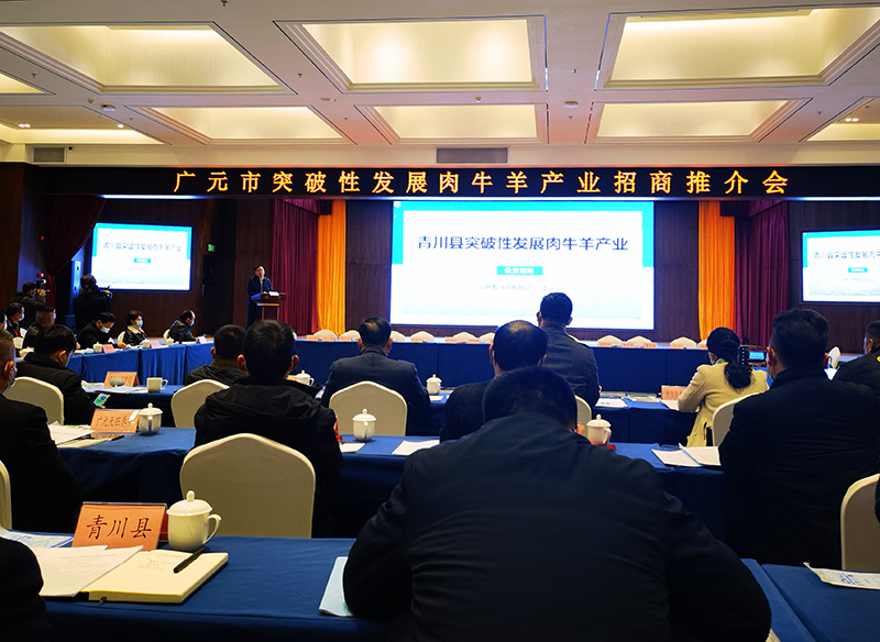 近日,广元市突破性发展肉牛羊产业招商推介会在凤台国际酒店举行。县委书记龙兆学推介青川肉牛羊产业,成功签约总投资6.18亿元的肉牛羊产业项目。