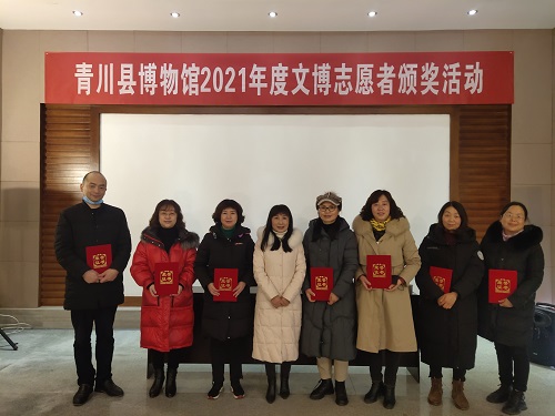 为进一步推进博物馆志愿者队伍建设工作,扩大文博志愿者的社会影响力,1月21日,由青川县文化旅游和体育局主办、青川县博物馆承办的2021年度文博志愿者颁奖活动在县博物馆一楼多媒体厅举行。