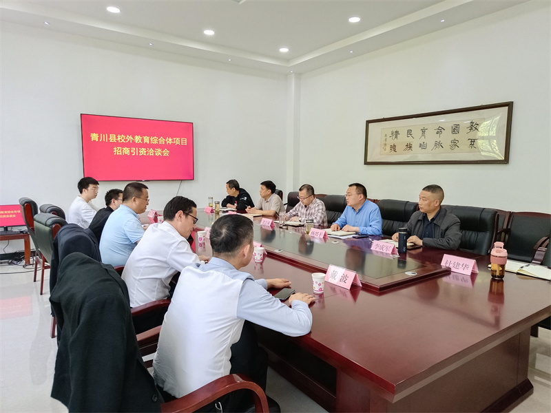 4月26日,青川县校外教育综合体项目招商引资洽谈会在青川县教育局召开。县政协副主席、县教育局局长梁志林及四川省文轩国际文化研学中心总经理黄明出席会议,会议由县教育局副局长杨兴干主持。