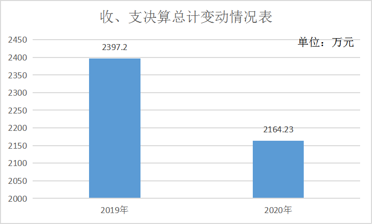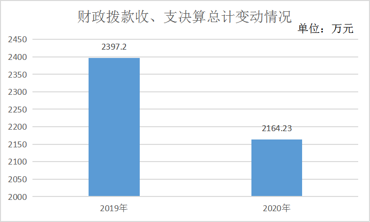 2020年度财政拨款收入支出总计2164.23万元。与2019年相比,收、支总计减少227.97万元,减少9.51%。