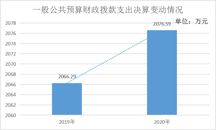 2020年一般公共预算财政拨款支出2076.59万元,占本年支出合计的100%。与2019年相比,一般公共预算财政拨款增加10.3万元,增长0.49%。主要变动原因是人员增加。