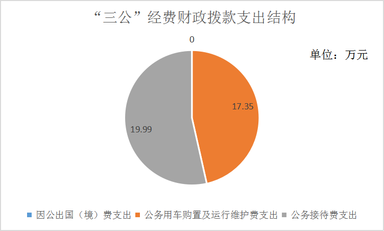 2020年“三公”经费财政拨款支出决算中,因公出国(境)费支出决算0万元,占0%;公务用车购置及运行维护费支出决算17.35万元,占46.46%;公务接待费支出决算19.99万元,占53.54%。具体情况如下: