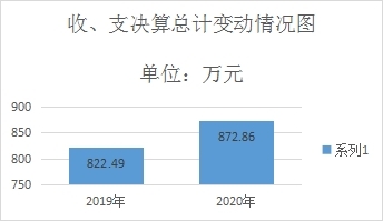 2020年度收入支出总计872.86万元。与2019年相比,收入总计增加50.37万元,增长6.12%。主要变动原因是行政区划调整,人员增加。