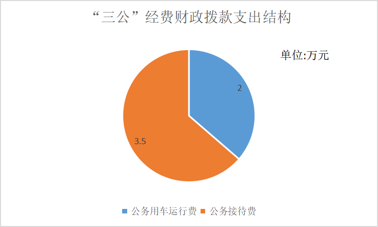 2020年“三公”经费财政拨款支出决算中,因公出国(境)费支出决算0.00万元,占0.00%;公务用车购置及运行维护费支出决算2万元,占36.36%;公务接待费支出决算3.5万元,占63.64%。具体情况如下: