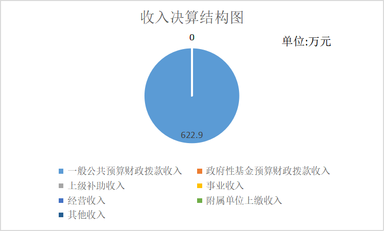 2020年本年收入合计622.9万元,其中:一般公共预算财政拨款收入622.9万元,占100.00%;政府性基金预算财政拨款收入0.00万元,占0.00%;上级补助收入0.00万元,占0.00%;事业收入0.00万元,占0.00%;经营收入0.00万元,占0.00%;附属单位上缴收入0.00万元,占0.00%;其他收入0.00万元,占0.00%。