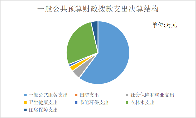 2020年一般公共预算财政拨款支出621.94万元,主要用于以下方面:一般公共服务(类)支出373.86万元,占60.11%;国防支出(类)0.80万元,占0.12%;社会保障和就业(类)支出30.47元,占4.9%;卫生健康支出(类)15.92万元,占2.6%;节能环保支出(类)8万元,占1.29%;农林水支出(类)170.55万元,占27.42%;住房保障支出(类)22.34万元,占3.56%。