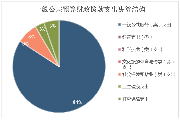 2020年一般公共预算财政拨款支出888.63万元,主要用于以下方面:一般公共服务(类)支出748.15万元,占84%;教育支出(类)0万元;科学技术(类)支出0万元;文化旅游体育与传媒(类)支出0万元;社会保障和就业(类)支出65.03万元,占8%;卫生健康支出29.02万元,占3%;住房保障支出46.43万元,占5%;。
