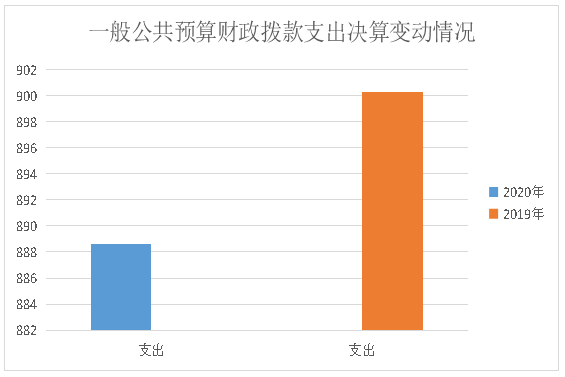 2020年一般公共预算财政拨款支出888.63万元,占本年支出合计的100%。与2019年相比,一般公共预算财政拨款减少12.93万元,下降1%。主要变动原因是厉行节约,压减经费支出。