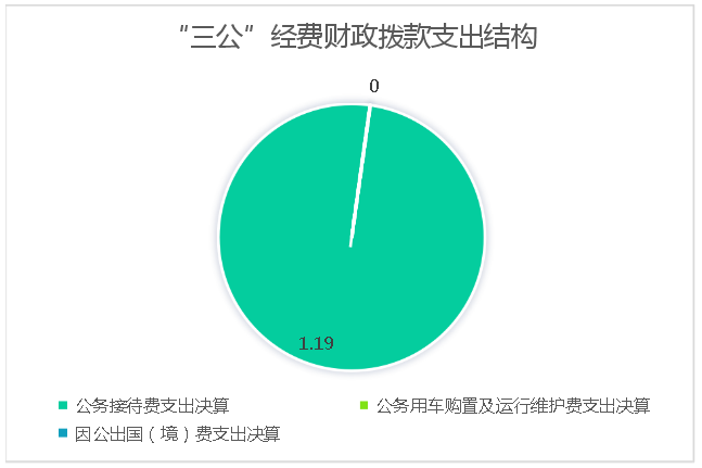 2020年“三公”经费财政拨款支出决算中,因公出国(境)费支出决算0万元;公务用车购置及运行维护费支出决算0万元;公务接待费支出决算1.19万元,占100%。具体情况如下: