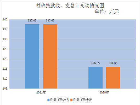 2021年财政拨款收、支总计137.45万元。与2020年相比,财政拨款收、支总计各增加21.40万元,增长18.44%。主要变动原因是2021年增加换届会议支出及招商工作支出