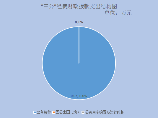 2021年“三公”经费财政拨款支出决算中,因公出国(境)费支出决算0.00万元,占0%;公务用车购置及运行维护费支出决算0.00万元,占0%;公务接待费支出决算0.07万元,占100.00%。具体情况如下: