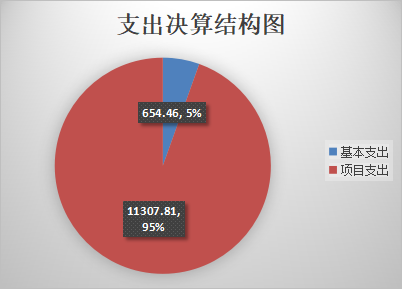 2021年本年支出合计11962.27万元,其中:基本支出654.46万元,占5%;项目支出11307.81万元,占95%。