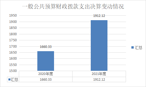 2021年一般公共预算财政拨款支出1912.12万元,占本年支出合计的16%。与2020年相比,一般公共预算财政拨款支出增加251.79万元,增长15%。主要变动原因是文化旅游体育与传媒支出资金增加。