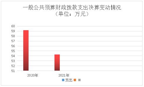 2021年一般公共预算财政拨款支出54.26万元,占本年支出合计的100%。与2020年一般公共预算财政拨款支出59.17万元相比,一般公共预算财政拨款支出减少4.91万元,下降8.2%。主要变动原因是2021年一般公共预算财政拨款支出减少。