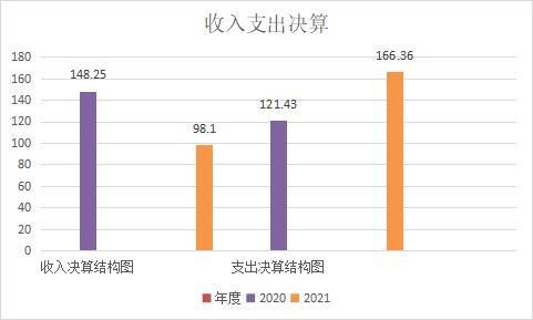 2021年度收入98.1万元、支出166.36万元。与2020收入148.25万元相比,收入减少50.15万元,减少33.83%、支出与2020支出121.43万元相比,支出增加44.93万元,增长37%。主要变动原因是项目资金增加及工资调标等。(注:数据来源于财决01-1表)