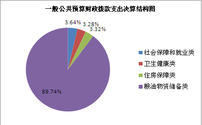 2021年一般公共预算财政拨款支出336.14万元,主要用于以下方面:社会保障和就业(类)支出12.26 万元,占支出比重为3.64%;卫生健康(类)支出11.03万元,占支出比重为3.28%;住房保障(类)支出11.16万元,占支出比重为3.32%,;粮油物资储备(类)支出301.67万元,占支出比重为89.74%。