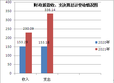 2021年财政拨款收入合计230.09万元,支出合计336.14万元,与2020财政拨款收入153.29万元、支出153.18万元相比,收入总计增加76.80万元,支出总计增加182.96万元,收入总计增加了50.10%,支出总计增加了119.44%。收入增加的主要原因是年中追加了退休人员医疗保险,退休人员独生子女一次性补贴,2020年在职人员目标奖、退休人员慰问金、在职人员调资等。支出增加主要是增加了年初结转资金支出。