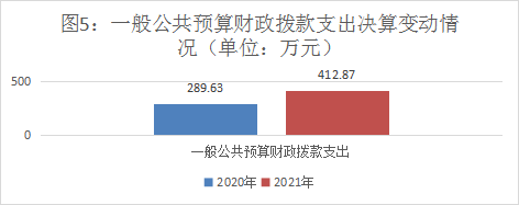 2021年一般公共预算财政拨款支出412.87万元,占本年支出合计的100%。与2020年相比,一般公共预算财政拨款支出增加123.24万元,增长42.55%。主要变动原因是项目增加。