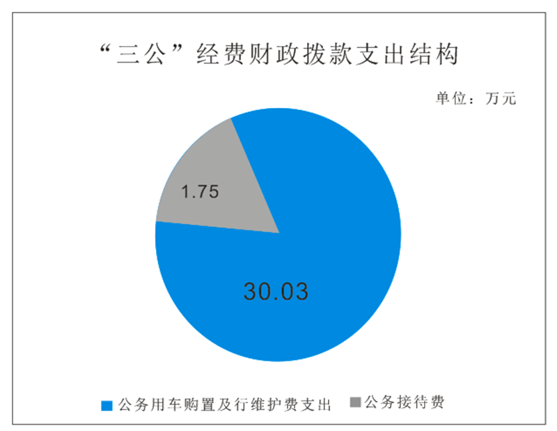 2021年“三公”经费财政拨款支出决算中,因公出国(境)费支出决算0万元,年初未安排预算;公务用车购置及运行维护费支出决算30.03万元,占94%;公务接待费支出决算1.75万元,占6%。具体情况如下: