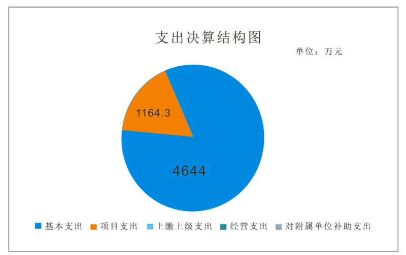 2021年本年支出合计5808.3万元,其中:基本支出4644万元,占80%;项目支出1164.3万元,占20%;上缴上级支出0万元;经营支出0万元;对附属单位补助支出0万元。