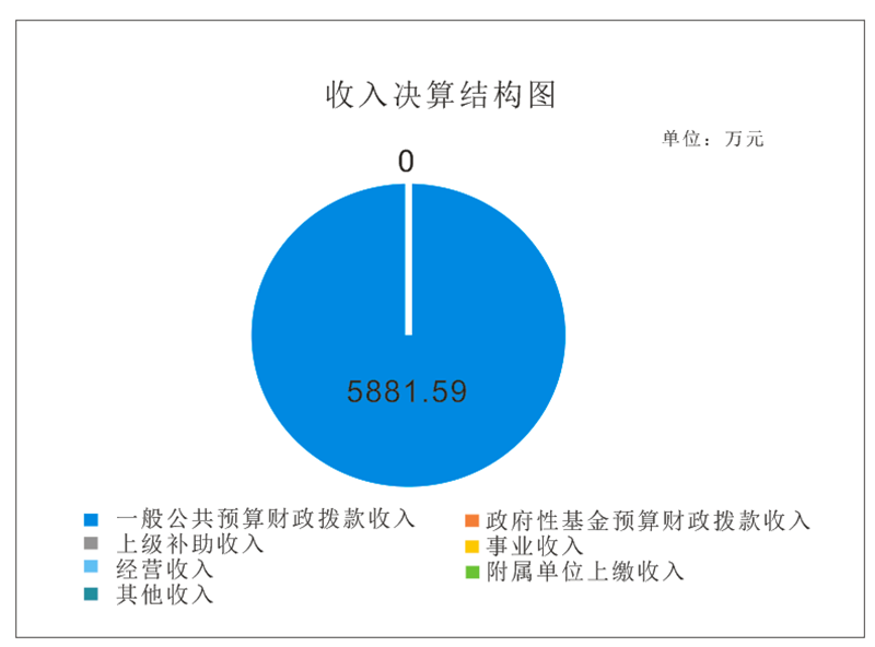 2021年本年收入合计5881.59万元,其中:一般公共预算财政拨款收入5881.59万元,占100%;政府性基金财政预算财政拨款收入0万元;国有资本经营预算财政拨款收入0万元;上级补助收入0万元;事业收入0万元;经营收入0万元;附属单位上缴收入0万元;收受其他0万元。