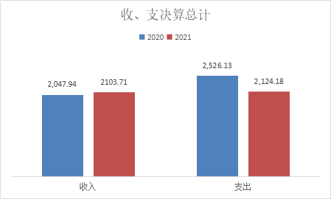 2021年度财政资金收入2103.71万元,其中:一般公共预算财政拨款收入2,103.71万元。