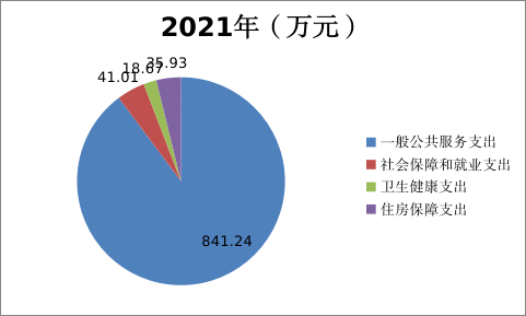 2021年一般公共预算财政拨款支出936.85万元,主要用于以下方面:一般公共服务(类)支出841.24万元,占90%;教育支出(类)0万元,占0%;科学技术(类)支出0万元,占0%;文化旅游体育与传媒(类)支出0万元,占0%;社会保障和就业(类)支出41.01万元,占4%;卫生健康支出18.67万元,占2%;住房保障支出35.93万元,占4%。