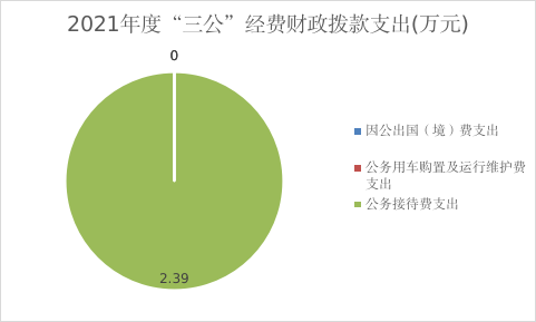 2021年“三公”经费财政拨款支出决算中,因公出国(境)费支出决算0万元,占0%;公务用车购置及运行维护费支出决算0万元,占0%;公务接待费支出决算2.39万元,占100%。具体情况如下: