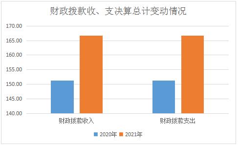 2021年财政拨款收、支总计166.73万元。与2020年相比,财政拨款收入总计增加15.44万元,增长10.21%,财政拨款支出总计增加15.44万元,增长10.21%。主要变动原因是新增一人,人员公用经费同时增加,导致一般公共预算财政拨款增加。