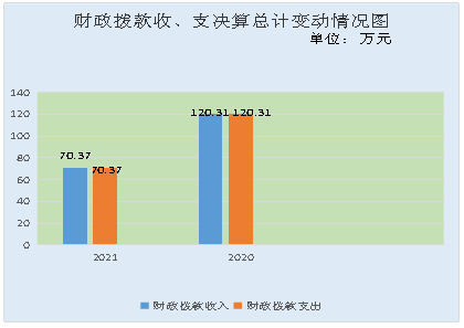 2021年财政收、支总计70.37万元。与2020年相比,收、支总计各减少49.94万元,下降41.51%。主要变动原因是人员经费及日常公用经费开支减少。