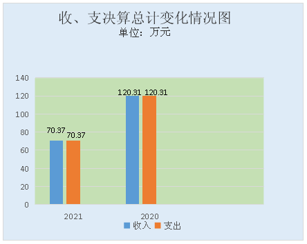 2021年度收、支总计70.37万元。与2020年相比,收、支总计各减少49.94万元,下降41.51%。主要变动原因是人员经费及日常公用经费开支减少。