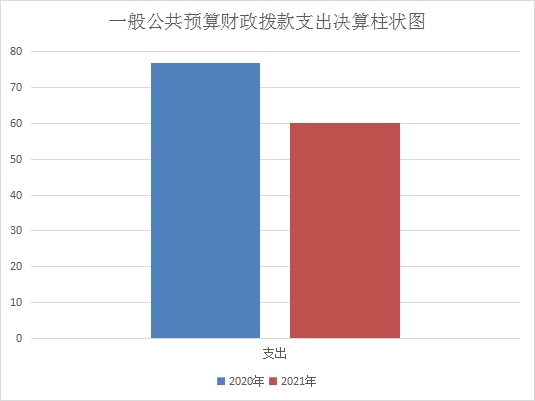 2021年一般公共预算财政拨款支出60.04万元,占本年支出合计的48.51%。与2020年相比,一般公共预算财政拨款支出减少16.71万元,下降21.77%。主要变动原因是2021年度财政拨款减少,财政支出相应减少。