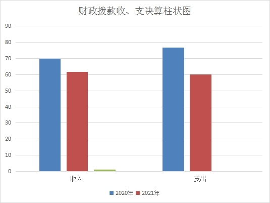 2021年财政拨款收入总计61.66万元、支出总计60.04万元。与2020年相比,财政拨款收入减少8.13万元,下降11.65%;财政拨款支出总计减少16.71万元,下降21.77%。主要变动原因是2021年度财政拨款减少,财政支出相应减少。