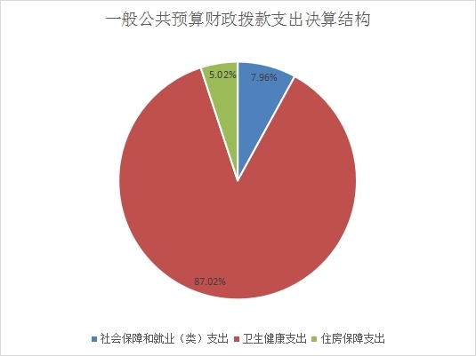 2021年一般公共预算财政拨款支出56.63万元,主要用于以下方面:社会保障和就业(类)支出4.51万元,占7.96%;卫生健康支出49.28万元,占87.02%;住房保障支出2.84万元,占5.02%。