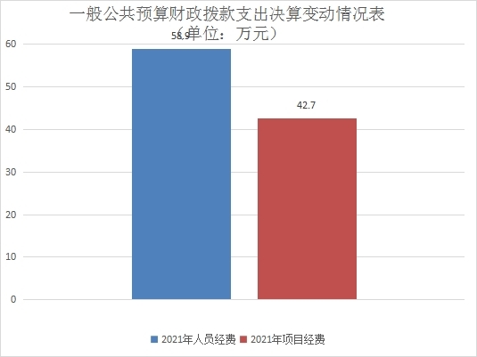 2021年一般公共预算财政拨款支出101.6万元。其中:人员经费58.9万元,项目经费42.7万元。