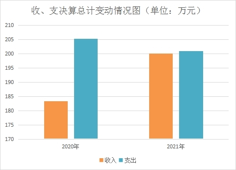 2021年度收入总计200.06万元,支出总计200.98万元。与2020年相比,收入总计增加16.75万元,增长9.14%,主要变动原因是项目资金增加及工资调标等;支出总计减少4.30万元,减少2.09%,主要变动原因是基本公共卫生服务项目、疫情防控补助项目资金未使用完成。
