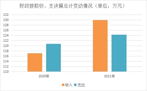 2021年财政拨款收入总计129.98万元、支出总计124.31万元。与2020年相比,财政拨款收入总计增加12.81万元,增长10.93%,支出总计增加3.48万元,增长2.88%。主要变动原因是项目资金增加及工资调标等。