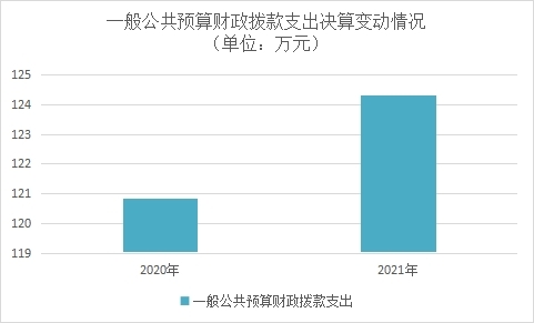 2021年一般公共预算财政拨款支出124.31万元,占本年支出合计的61.85%。与2020年相比,一般公共预算财政拨款支出增加3.48万元,增长2.88%。主要变动原因是项目资金增加及工资调标等。
