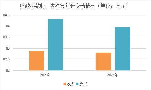 2021年财政拨款收入总计82.81万元、支出总计83.95万元。与2020年相比,财政拨款收入总计减少0.07万元,