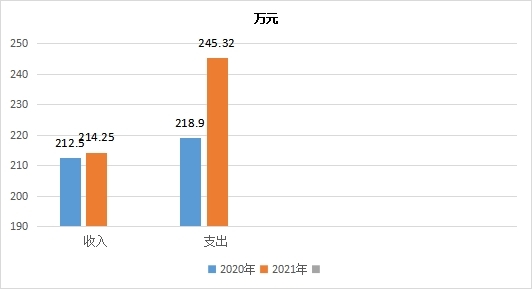 2021年度收入总计214.25万元、支出总计245.32万元。与2020年相比收入上升1.73万元,上升0.08%,支出增加26.34万元,增长5.53%。主要变动原因收入增长是业务收入增长、财政补助预算调资等正常增长,支出增加是疫情防控人员经费和公用经费同时增加。