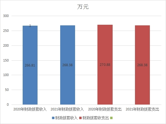 2021年财政拨款收入总计268.38万元。与2020年相比,财政拨款收入增长1.57万元,增长0.59%。财政拨款支出总计268.38万元。与2020年相比,财政拨款支出下降2.5万元,下降0.09%。主要变动财政收入增长是财政预算人员调资、疫情防控财政补助增加,财政拨款支出下降是使用上年财政拨款结转减少、如基本公共卫生。