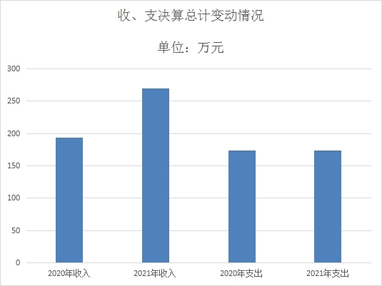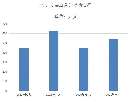 2021年度收入、支总计626.28万元、547.69万元。与2020年相比,收、支总计各增加181.61万元、增加99.55万元,增长40.84%,增长22.21%。主要变动原因:收入增加主要原因是新增医养结合项目收入与业务收入增加,支出增加主要原因是增加医养结合项目支出。